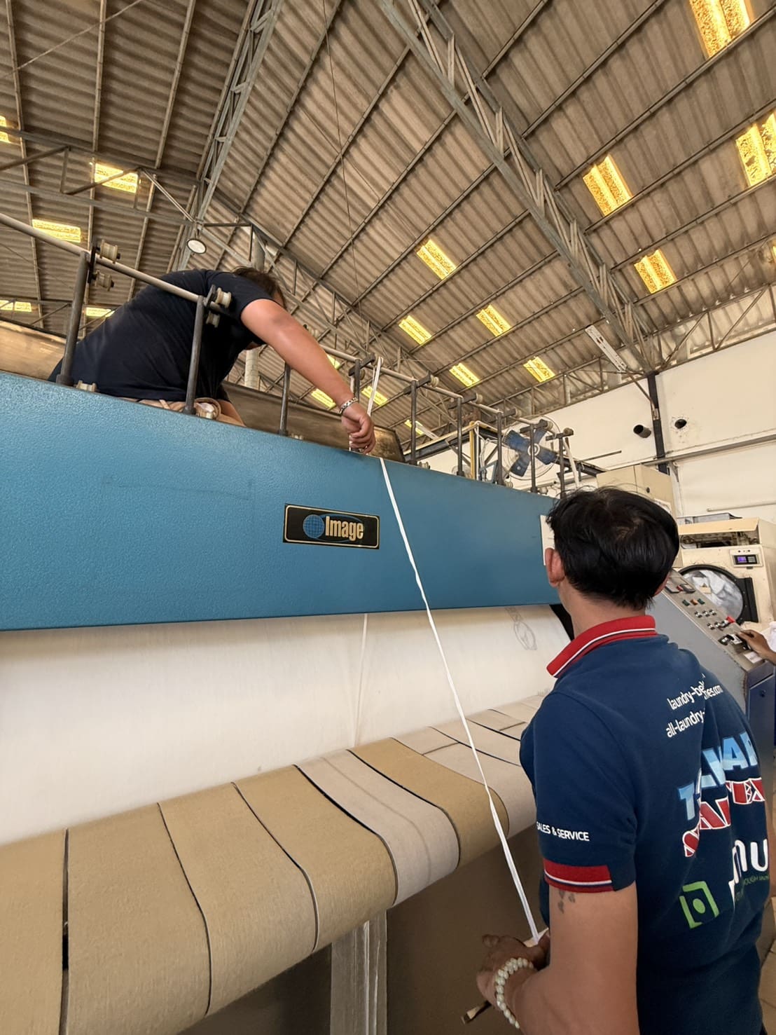 งานติดตั้ง ผ้าสักหลาดหุ้มลูกกลิ้งกดทับ เครื่องรีดผ้าแบบสายพาน IMAGE