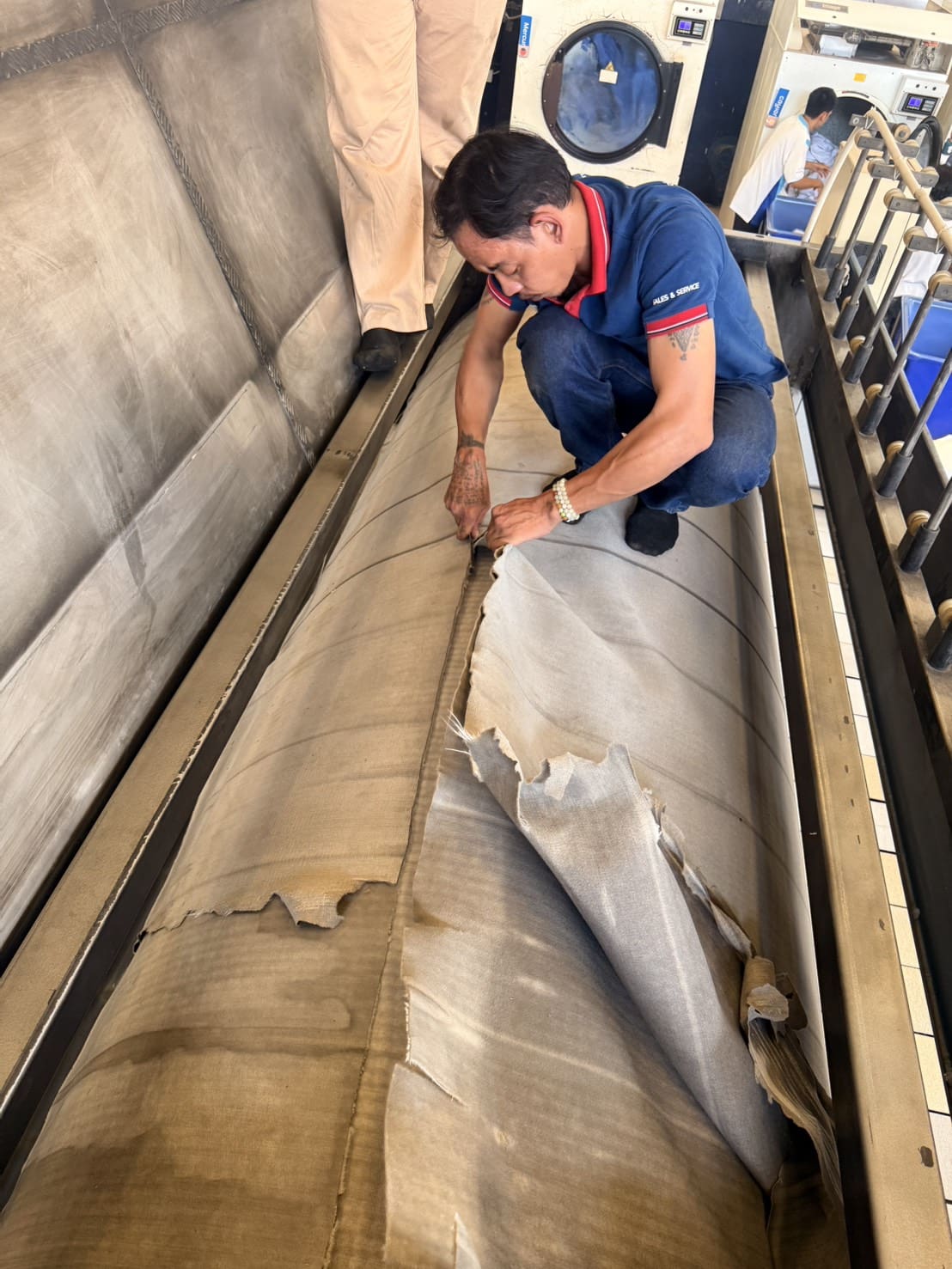 งานติดตั้ง ผ้าสักหลาดหุ้มลูกกลิ้ง NICHOLINE เครื่องรีดผ้าแบบกระทะ IMAGE